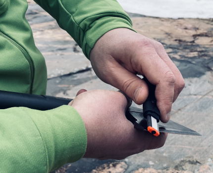 Testasimme Sharpalia myös Peltonen Knives sissipuukon ja Fiskars retkikirveen terien pikateroittamiseen. Teroitus tehdään vuolemalla muutamia kertoja karbiditerä edellä -asennossa puukon terän kärkeä kohti puukon molemmin puolin. Terän viimeistely tapahtuu vuolemalla keraamiterä edellä -asennossa puukon terän kärkeä kohti 3-5 kertaa puukon molemmin puolin. Sama pätee soveltaen kirveen teroitukseen. Varsinkin teroitusvaiheessa on oltava huolellinen ja vuollettava vain kevyellä liikkeellä. Sharpalin karbiditerä on sen verran tehokas, että varomattomalla käsittelyllä tuhoaa helposti terän. Nopea pikahionta paransi puukon ja kirveen terävyyttä ja sellaiseen se on tarkoitettukin. Sharpalilla ei voi siten uudistaa isomman huollon tarpeessa olevaa terää eikä se myöskään korvaa kunnon teroitusvälineitä, joilla saa parhaan lopputuloksen. Tylsineen terän käyttökelpoiseen kuntoon saamiseen nopeasti retkiolosuhteissa se vaikutti soveltuvan hyvin.